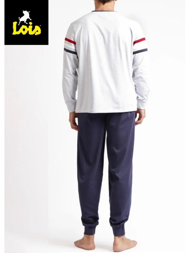 - Pijama de punto de algodón, de manga larga, cuello redondo y pantalón largo.