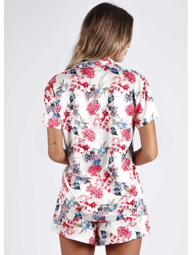- Camiseta de raso, abierta con diseño de flores, personalizada de la marca Admas.