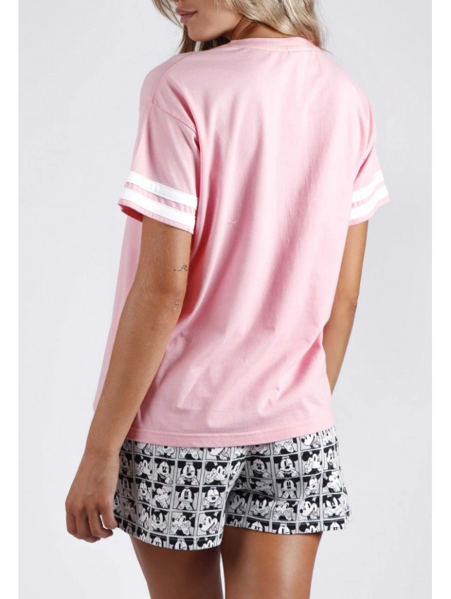 - Pijama de punto de algodón, de manga corta, cuello redondo y pantalón corto