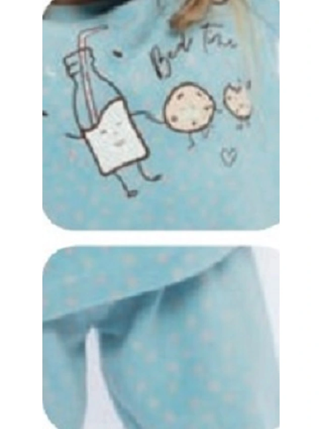- Pijama niña micropolar, con interior perchado (tejido más bien grueso, muy suave, gustoso al tacto y calentito, para usar con las primeras noches frías del otoño o del invierno) y con puños en mangas y pantalón.