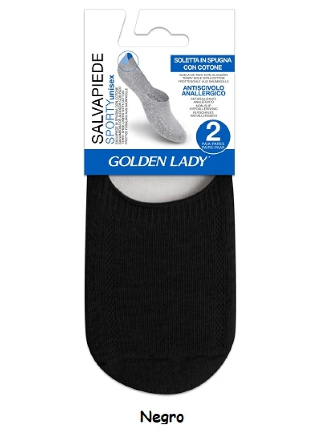 Descripción: - Salvapies de plantilla de algodón con banda acanalada en el empeine para mayor estabilidad al calzar. - Plantilla tejida en suave esponja con algodón y elaboración perforada para máxima transpirabilidad. - Protección antideslizante hipoalergénica en el talón para garantizar una perfecta estanqueidad y ajuste. Composición: 86% Algodón,12% Poliamida, 2% Elastano.