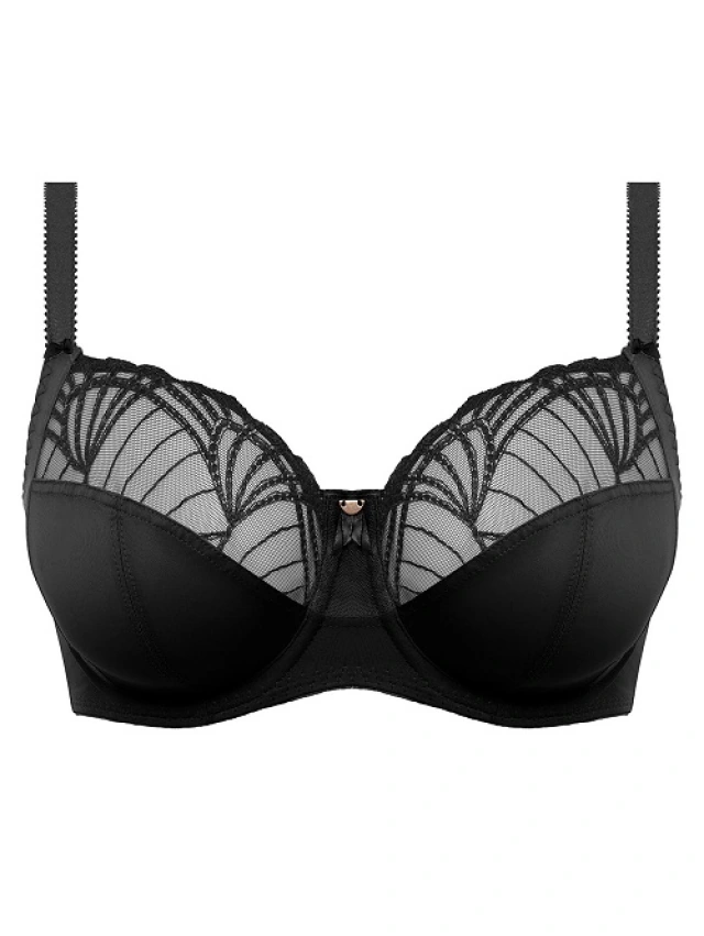 - Bordado reciclado estilo geométrico de diseño suizo en la parte superior de la copa.