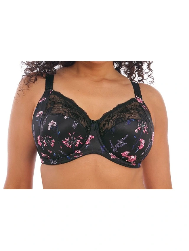 - En su nuevo tono Moonlight Meadow, que ofrece un diseño floral femenino, inspirado en los jardines de la campiña inglesa, el sujetador con bandas elásticas de Morgan ofrece un poderoso cordón elástico para dar una forma bellamente redondeada y siempre brinda el apoyo y la comodidad característicos de Elomi.