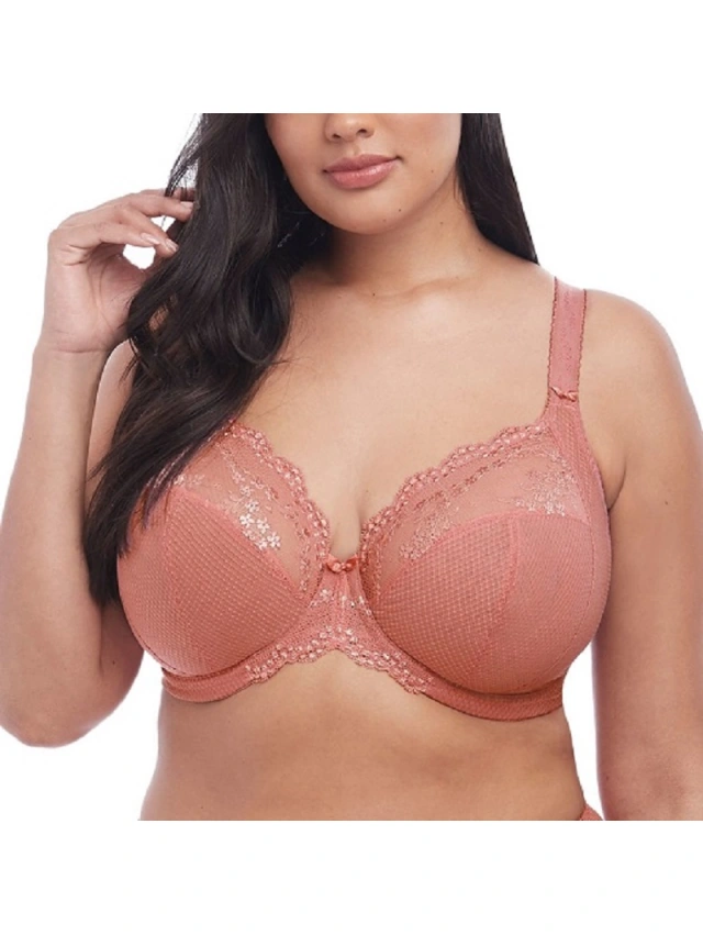 - El sujetador con aros con bandas presenta tres copas de sección más un marco lateral para dar forma hacia adelante, mientras que un escote bajo proporciona una zambullida sin empujar hacia arriba.
