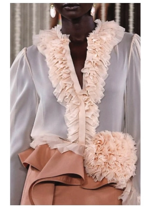 Cinta volante de gasa formada por varias capas de gasa para aumentar la sensación de volumen.